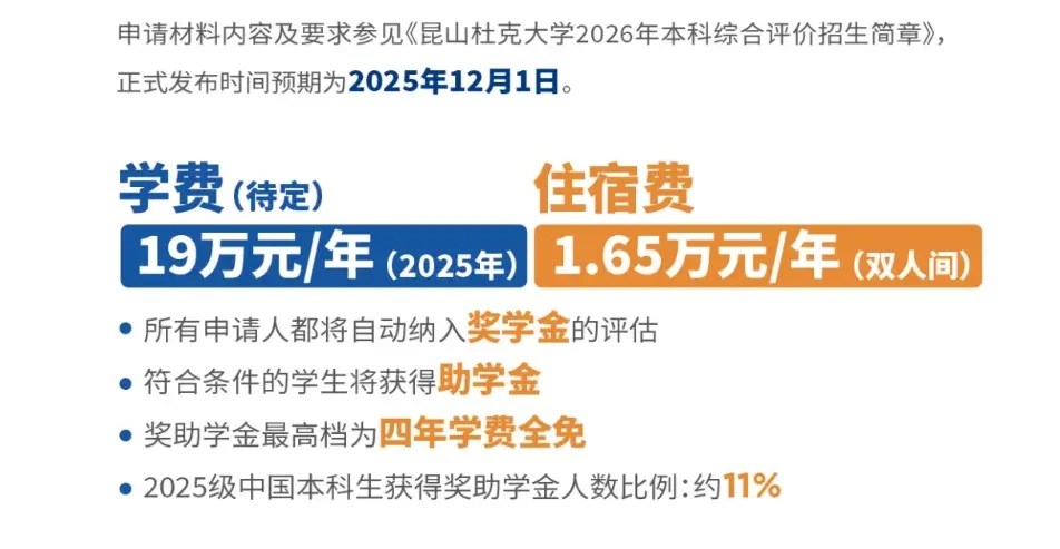 昆山杜克大学2026本科综评招生启动!高考成绩占比60%,22省市可报